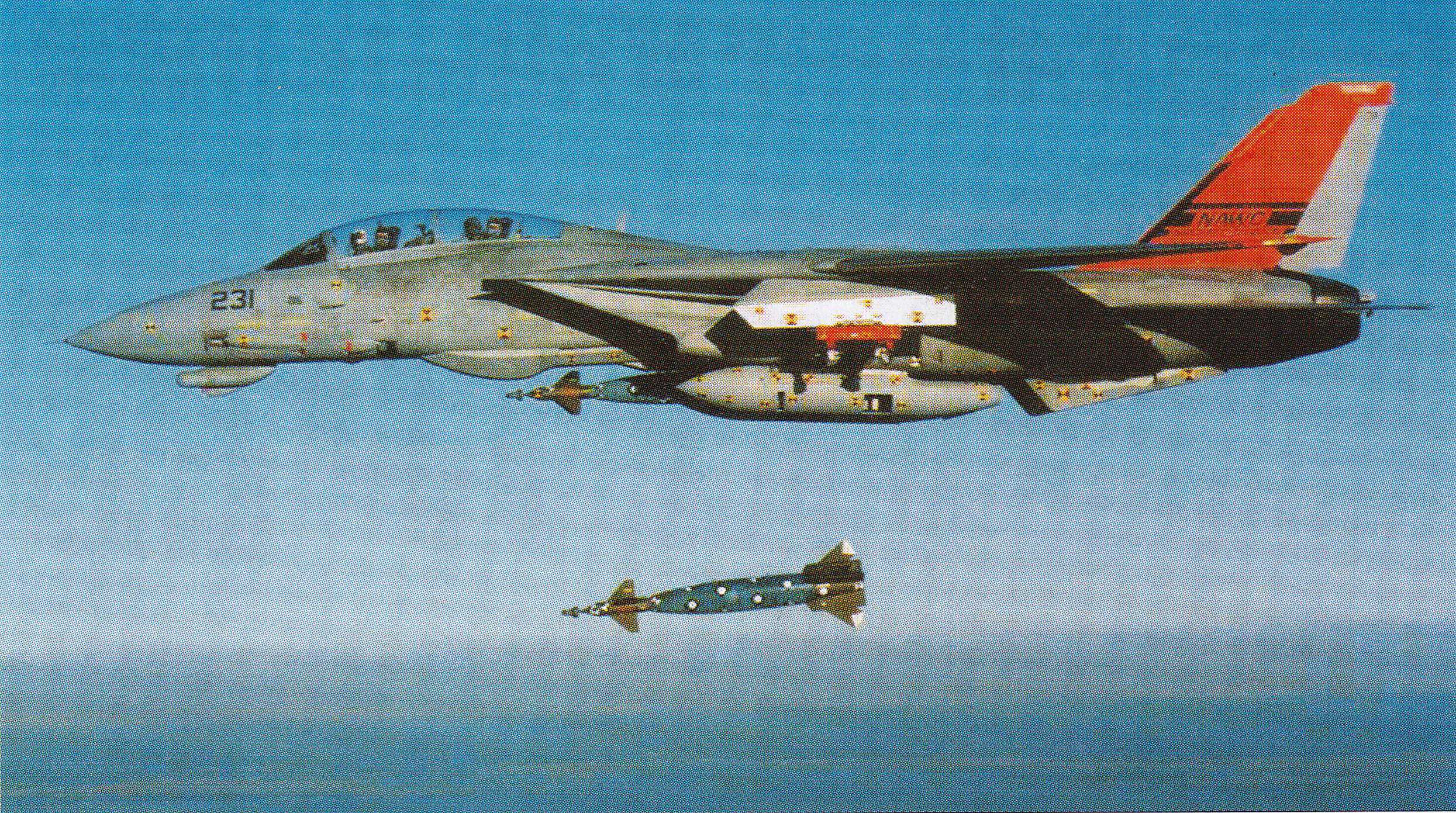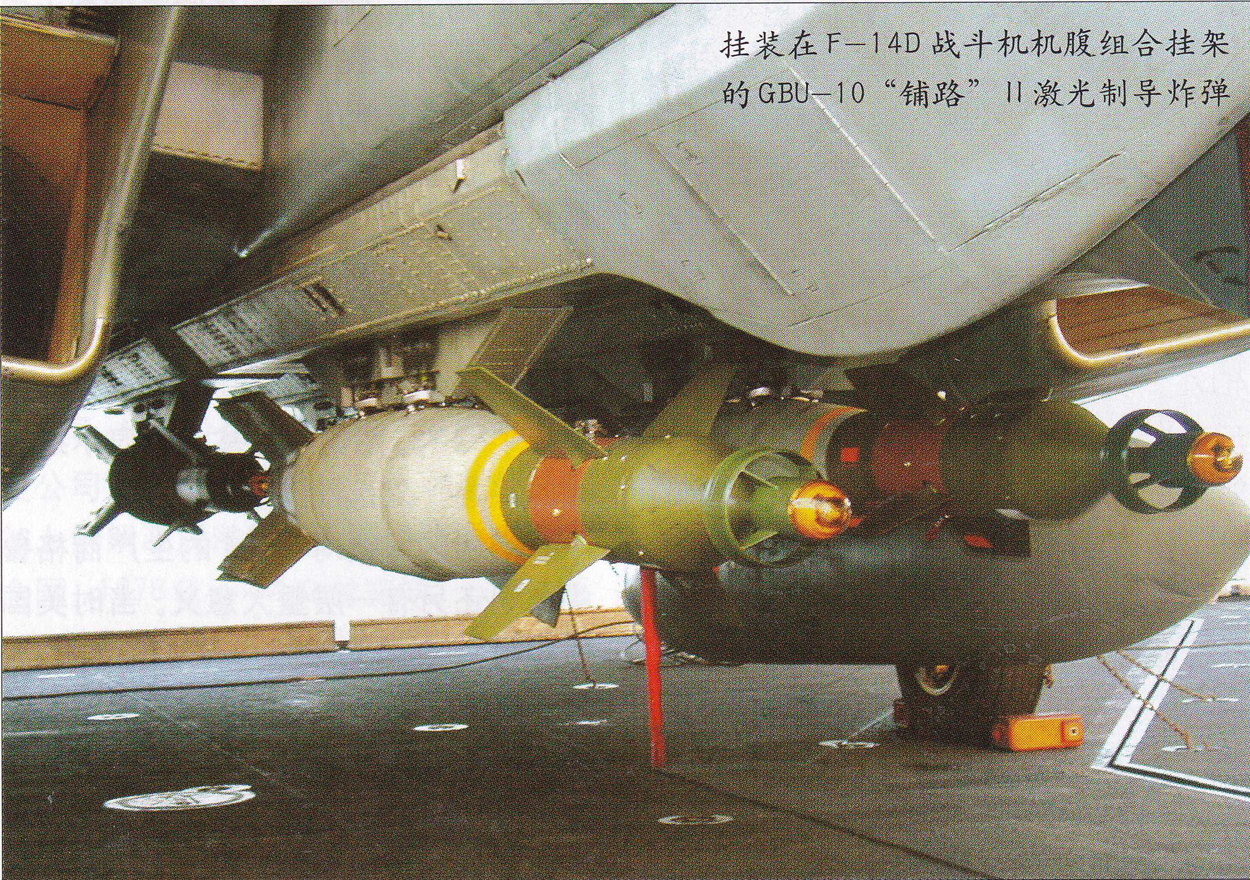 正在投放GBU-10“铺路”IⅡ激光制导炸弹的F-14D战斗机