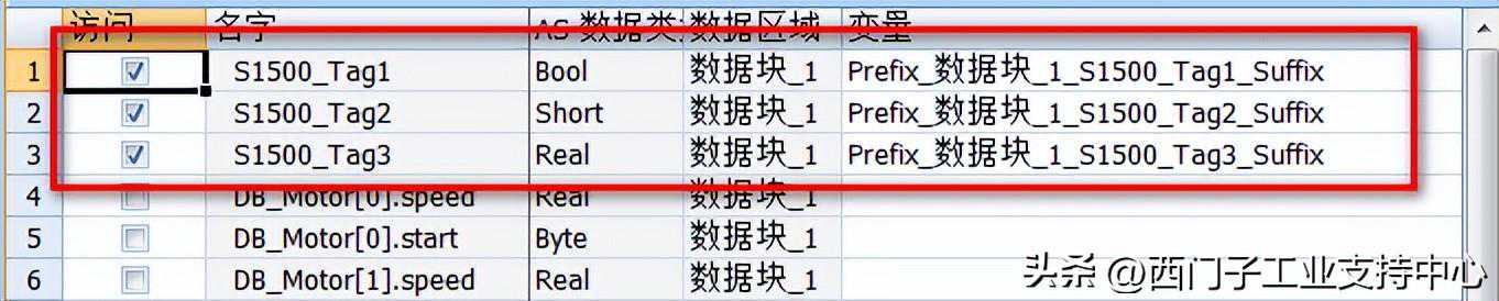 为了方便区分变量来自于哪一个PLC,可以针对这一个连接的变量同时添加变量前缀和后缀名称。