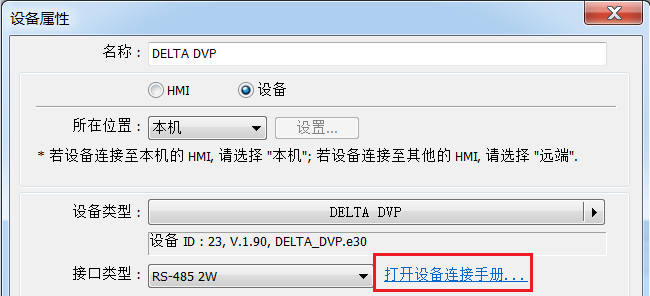 注意:通讯类型选择RS4852W时,通讯站号必须设置为非0的站号;否则无法与PLC建立通讯(WPLSoft软件亦不支持通讯)。