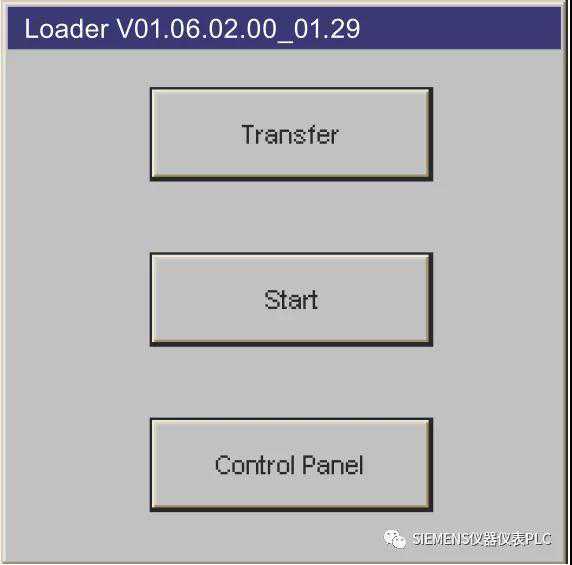 给Smart1000IE设备断电再上电后,HMI设备将会出现启动画面,单击Transfer按钮,使HMI设备处于“传送”模式。