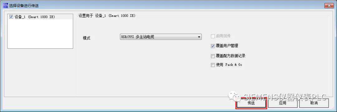 接着在WinCCflexible软件的菜单栏选择“项目”“传送”“传输”,如图10所示。单击“传输”即可打开“选择设备进行传送”窗口,如图11所示。在“选择设备进行传送”窗口,用户可以选择传输模式为“串行”或“串口(通过USB-PPI电缆)”,在此选择后者进行传输。