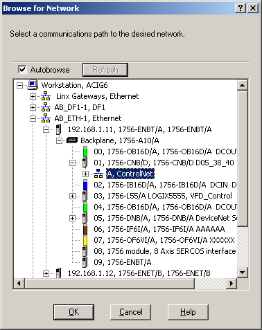 27,但是通过观察,发现I/Onotresponding的灯在处理器上闪动,并且PowerFle70模块上由黄色的三角标记,这表示PowerFle70的数据属于Schedule的数据需要进行控制网络规划后才能使用,因此我们需要进行ControlNet的网络规划。