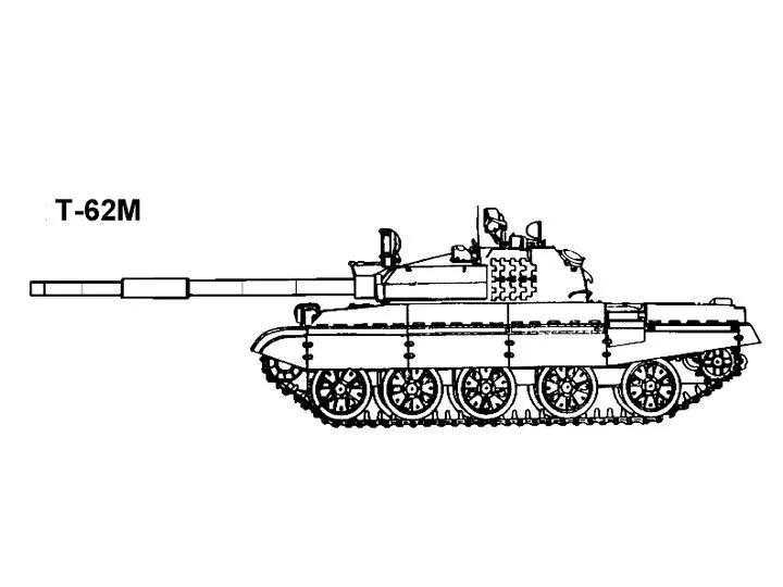 T-62的衍生型有T-62A(采用U-8TS线膛炮)T-62M(改良射操系统,加装弹道计算电脑和激光测距仪,可发射9K116炮射导弹,炮塔右侧加上8个烟幕弹发射器,加装充填聚氨酯泡沫的附加装甲,车体正面加装30毫米厚聚氨酯泡沫装甲,车体侧面加装塑胶侧裙装甲,使其正面抗穿能力提至320毫米。由于强化装甲令其车重增加了3吨而要增强悬挂系统的载重量并在第2对车轮上加上油压减震器,发动机马力增加至617匹)T-62MV(使用爆照反应装甲代替附加装甲的T-62M)T-62D(以TMT-5主动式坦克防卫系统取代附加装甲的T-62,其射控系统也和T-62M相同但不能使用炮射导弹)T-62MB(暂无资料)T-62AG(暂无资料)