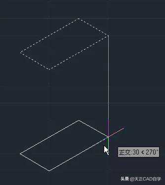 (4)按F5切换到右视,执行复制(CO)命令,选中绘制好的长方形,指定基点,将图形向下复制30个单位。