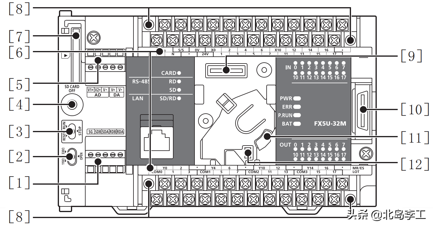 以FX5U-32MR/ES为例,其外观如下图所示: