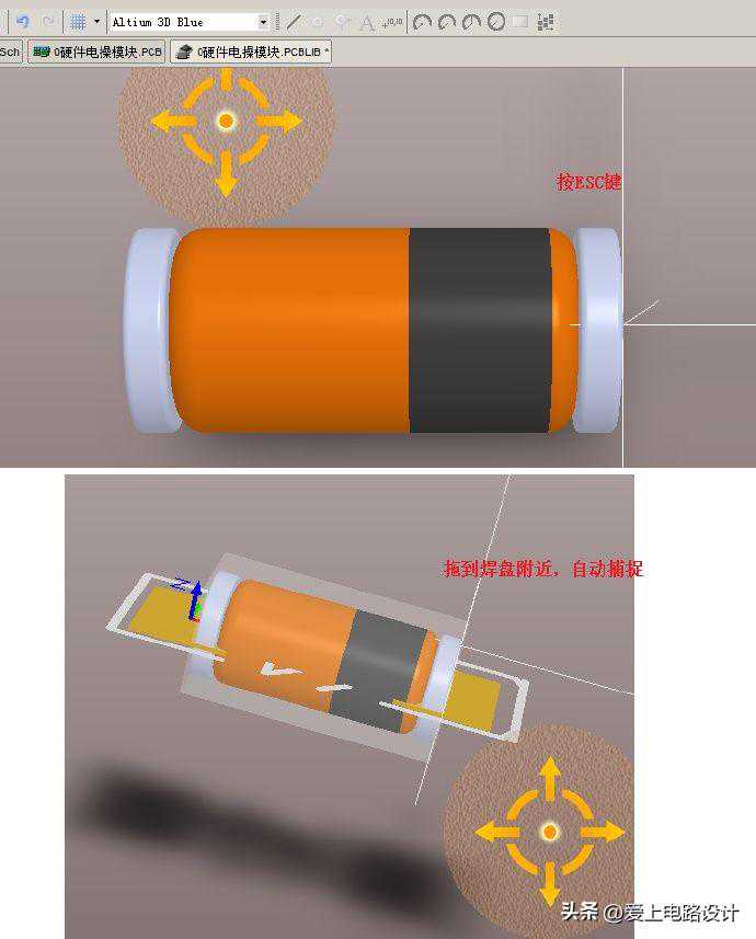 Shift+鼠标右键自由旋转,数字0回正,数字9垂直翻转;V+B快速正反面翻转。空格键旋转元件体自身。