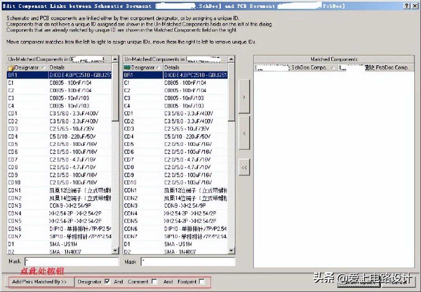 2)勾选AdvancedMode,在其中一个选择Sch,并在另一个中选择对应的PCB文件,如下图。