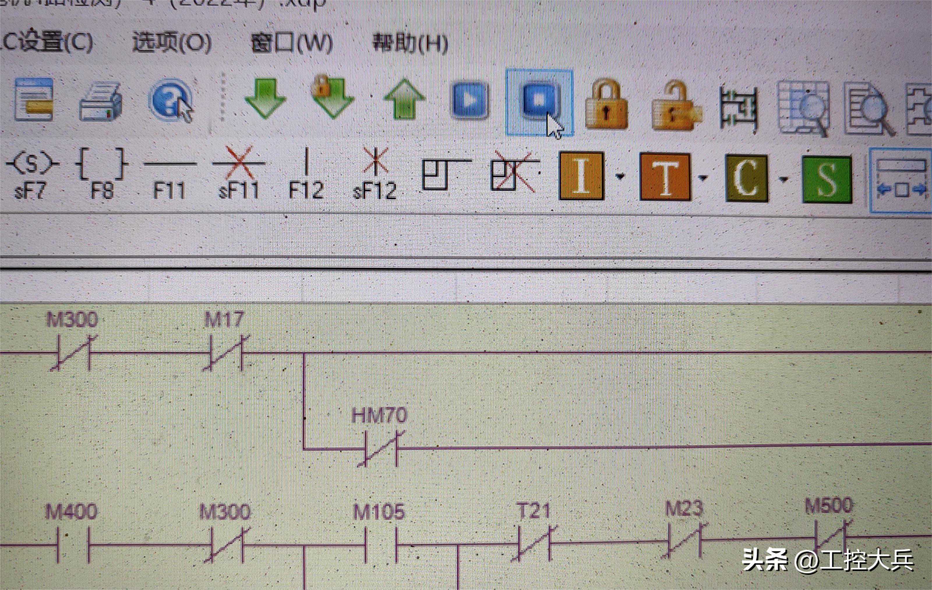 确认连接上以后,就可以正常下载程序了。下载前先要停止PLC的工作,下图快捷图标点一下,也可以在下拉菜单找到相应的功能