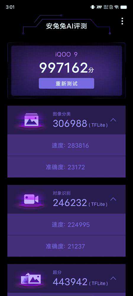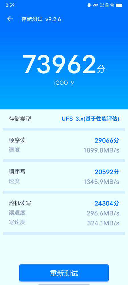 在实测中,iQOO9安兔兔成绩超过了103万,AI测试成绩接近10万分,同时存储方面因为首发采用超频版,并具有Turbo模式,性能测试表现也非常突出,在日常游戏和应用的载入中能够大幅提升极速体验感,可以说应对目前的主流游戏毫无压力。
