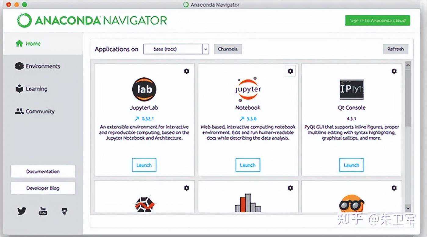 Anaconda:Python数据科学发行版,包含Python软件和几百种数据科学库,通过conda进行库管理。其中的Jupyter是非常主流的Python开发平台,适合进行数据分析、可视化、机器学习、教学等。