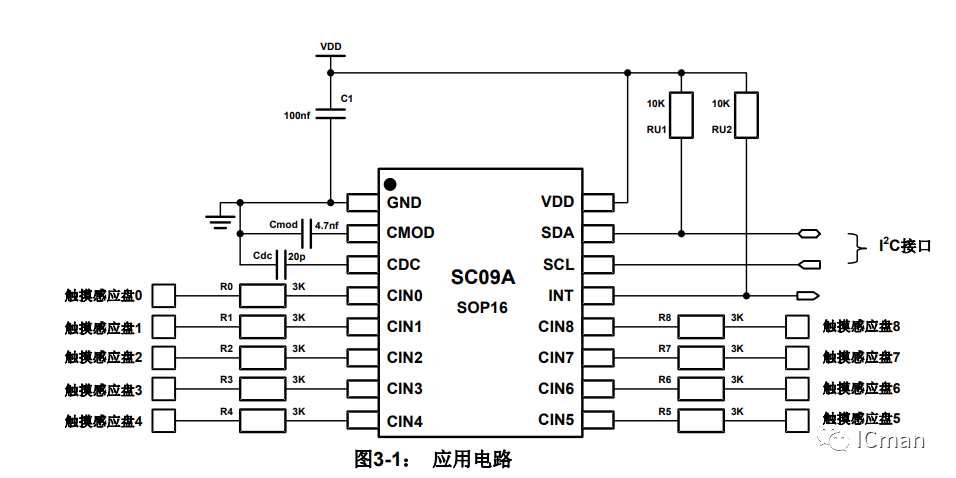 SC09A是带自校正的容性感应器,可以检测9个感应盘是否被触摸。它可以通过任何非导电介质(如玻璃和塑料)来感应电容变化。这种电容感应的开关可以应用在很多电子产品上,提高产品的附加值。