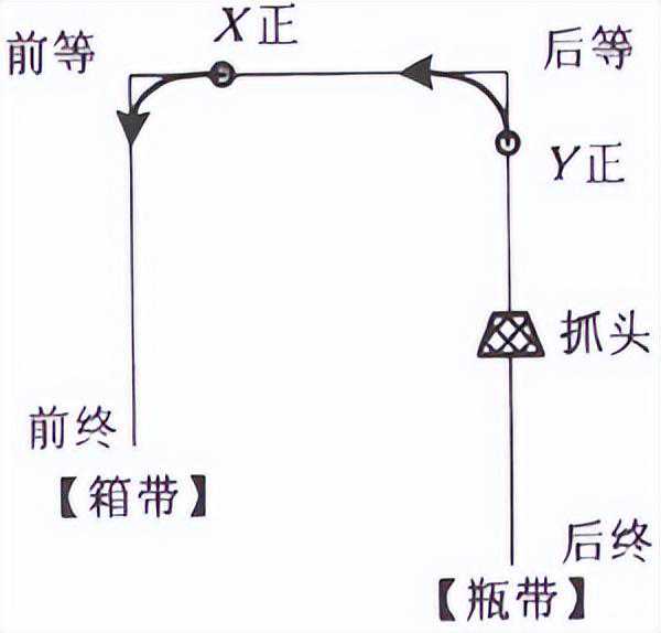 图5抓头状态为已充气抓瓶,并沿Y轴向后等位正程运行。当经过Y正处时,X轴电机开始启动,向前等位运行;当X轴运行至X正处时,Y轴开始启动,开始向前终位运行,从而在转角处两轴进行顺利过渡。