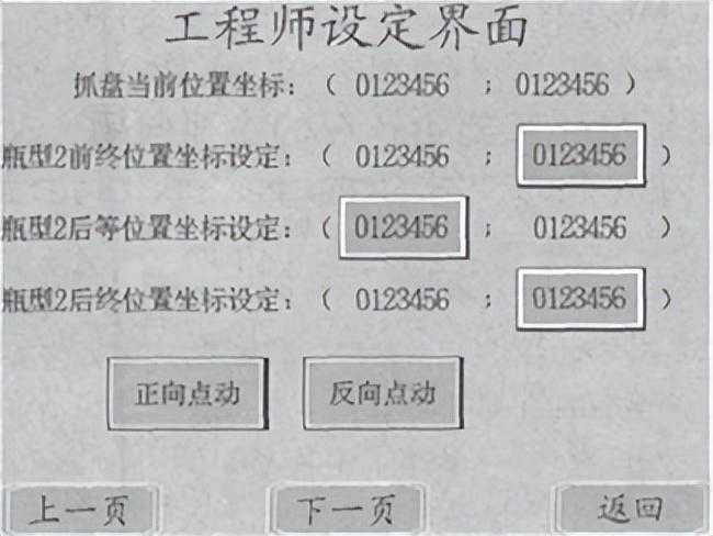 考虑到市场对包装的需求变化,饮料的瓶型和包装箱型会有所改变,可通过设定界面对PLC控制程序中的瓶型箱型参数进行修改,提高了装箱机的灵活性和适应性。