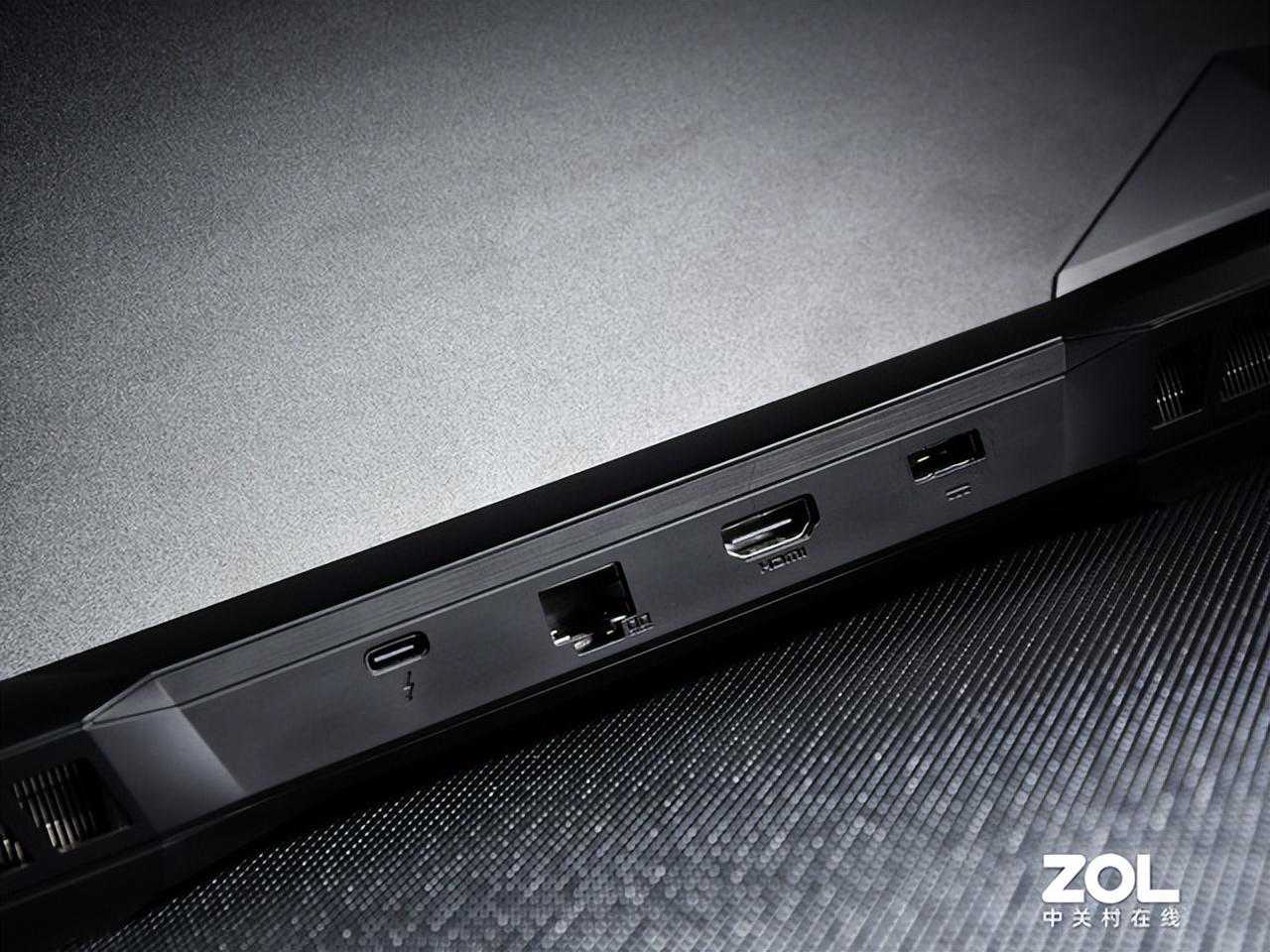 机身尾部配有1个雷电4,1个RJ45以太网口,1个HDMI接口(支持8K@60Hz/4K@120Hz),以及微星游戏本特制的电源接口。