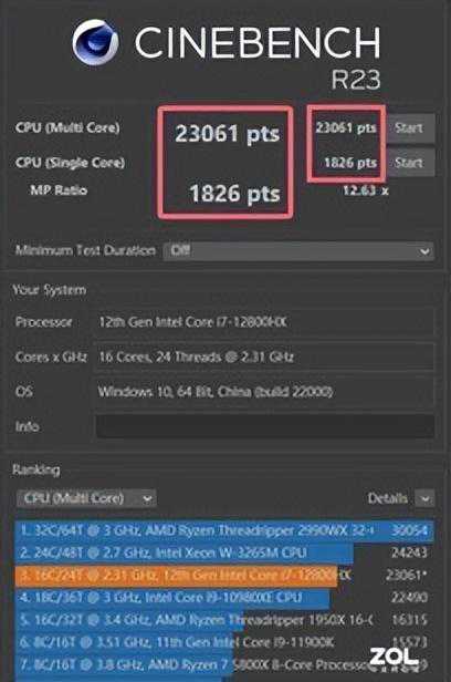 CINEBENCH测试标准中,实测CINEBENCHR15多核3363cb、单核263cb;CINEBENCHR20多核8775cb、单核691cb;CINEBENCHR23多核23061pts、单核1826pts。无论是多核还是单核,这颗处理器事实上已经超过了12代酷睿i9-12900HK性能。尤其是多核性能表现极为出色。