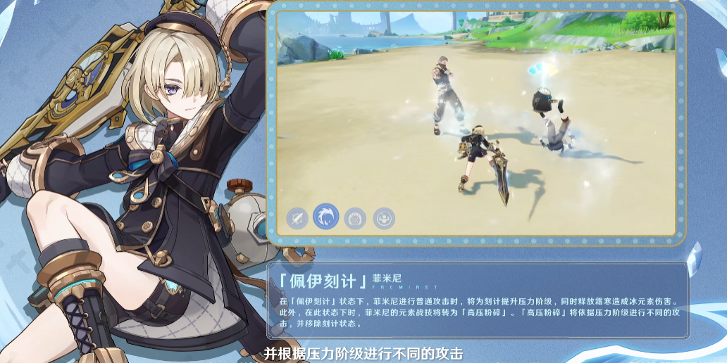 冰风组合:一种很优雅的共舞战斗模式,也就是战斗中需要与他们进行各种舞蹈,不愧是枫丹机器人啊,优雅永不过时。