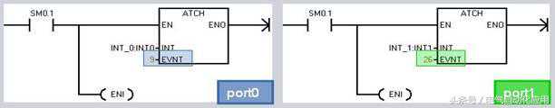 方法一:发送完成中断。通过连接中断服务程序到发送结束事件上,在发送完缓冲区中的最后一个字符时,则会产生一个中断。对通讯口0为中断事件9,对通讯口1为中断事件26。连接中断程序到中断事件示例如下图: