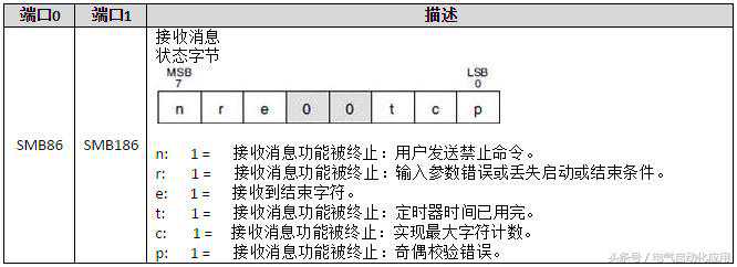 方法二:接收状态字节。SMB86(port0),SMB186(port1)。当接收状态字节为0,表示接收正在进行。当接收状态字节不为0,表示接收指令未被激活或者已经被中止。见下表:
