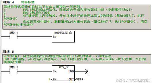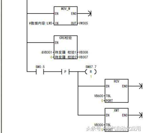 示例说明:RCV指令TBL缓冲区的首地址VB200保存的是接收字符个数,其后是信息字符。
