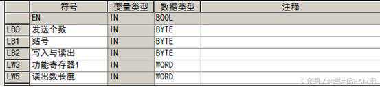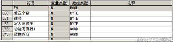 写变频器程序如下:发送数据格式参见上一讲。数据变量如下表:
