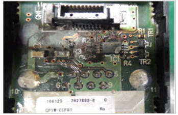 误接线、热插拔或通讯干扰导致PLC串口损坏或通讯适配器烧毁,如下图。