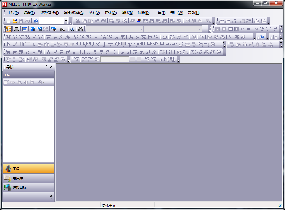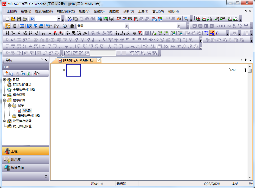 我们工程建立好了之后界面就会是白色的了,现在的状态就是可编辑状态,以后编写梯形图就是在这个里面编写了。
