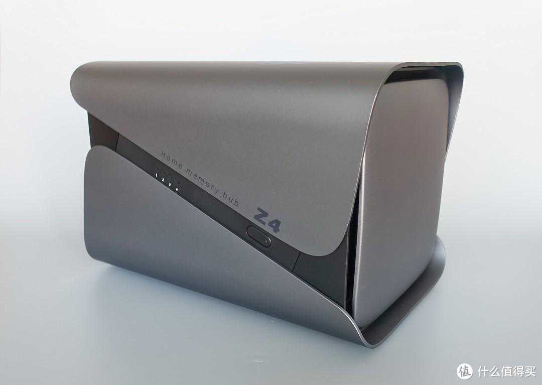 从另一侧角度来看,更像是一个Z形了。讲道理我个人挺喜欢这个炫酷的造型,感觉比起方方正正的传统NAS来说,科技范儿更足。