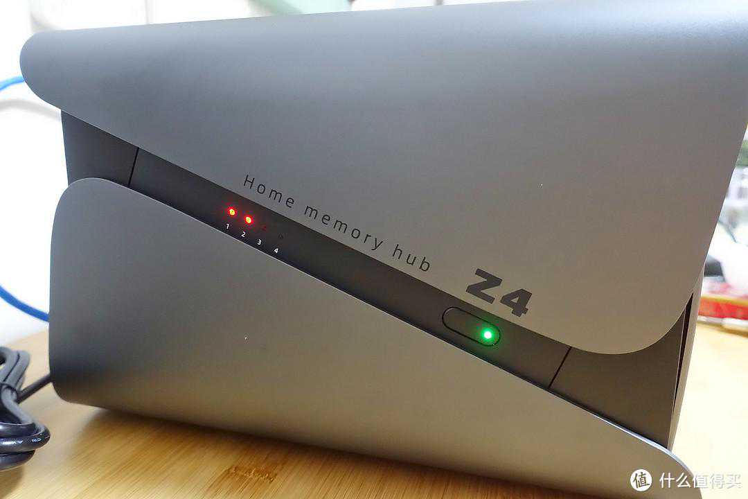 通电后发现,新Z4主机前面板下方有一个小小的LED灯,用来显示NAS的运行状态。如果觉得碍眼,可以在系统中设置关掉的。