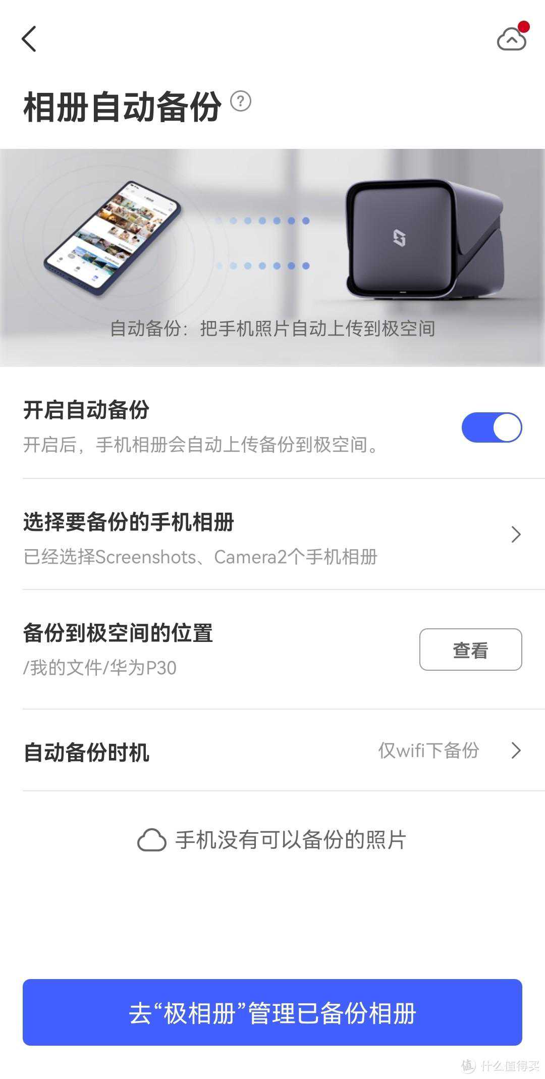 在极空间的手机APP里,可以设置手机相册自动备份,而且备份速度非常快。