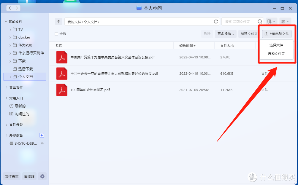 文件管理NAS的核心功能是数据存储,所以评价一台NAS做得好不好,文件系统的相关功能是重中之重。ZOS中,对于本地数据文件的管理,是通过“个人空间”这个套件来实现的。