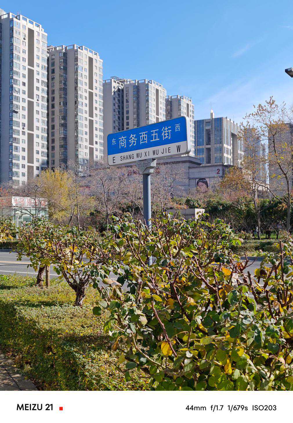虽然在细节方面还原并不出色,但不管是主摄的22mm焦段还是44mm焦段,魅族21都很好的压制了灯牌的高光,并且不是通过压低周围亮度实现的,这点魅族确实进步挺大的。