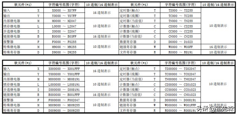 X/Y/M/S/B等开关量,开始地址须为16倍数(0,16,32,…);