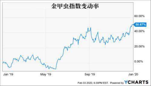 相比之下,金矿股表现更优,在同一时期内上涨了近60%。2019年,HUI(黄金生产商指数)的涨幅超过50%,许多金矿和白银矿商的业绩翻了一番,回报率达到了三位数。