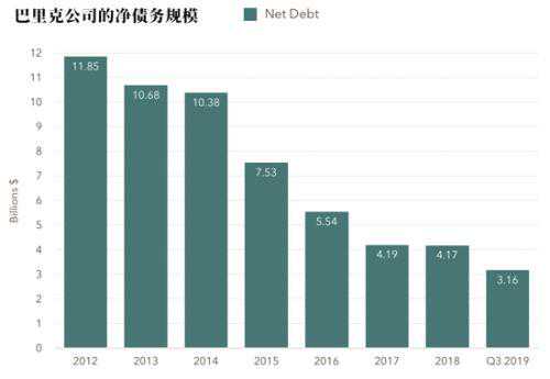 如金矿业的巨头巴里克公司的净债务总额大幅下降,从2012年的120亿美元跌至2019年第三季度的31.2亿美元。第四季度财报还没出炉,分析师预计,净债务规模将会在上一季度的基础上再削减10亿美元。