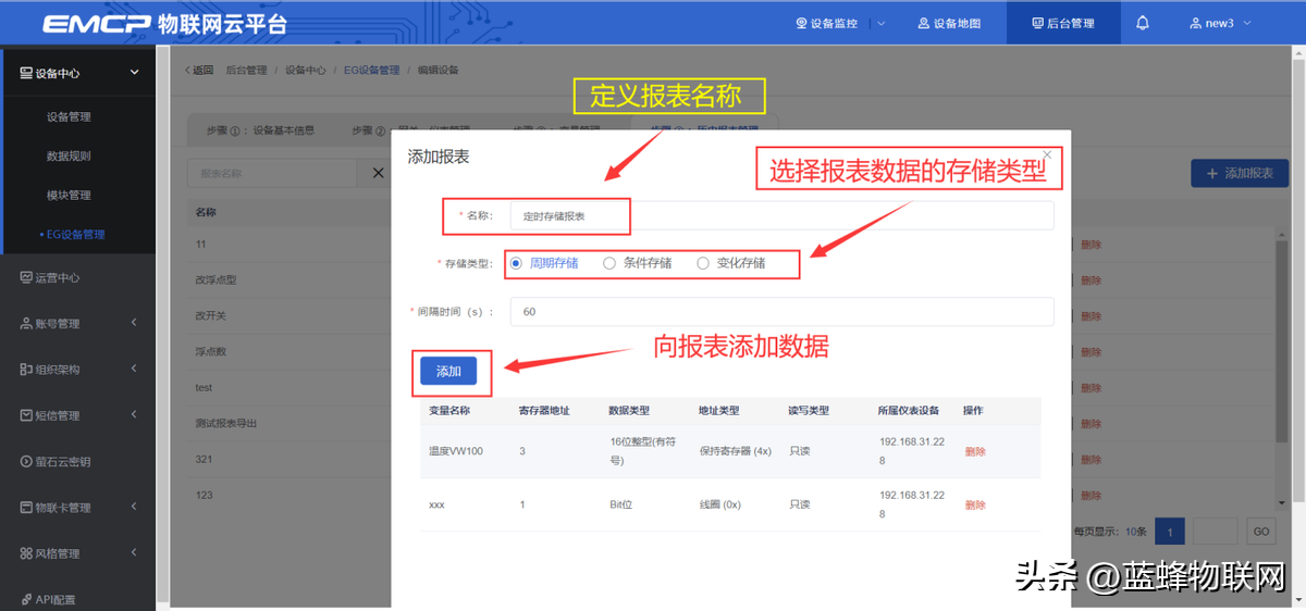 【最小采集时间】:是网关采集设备数据的时间间隔,单位:ms。如设置1000ms,即网关1s采集一次设备数据。