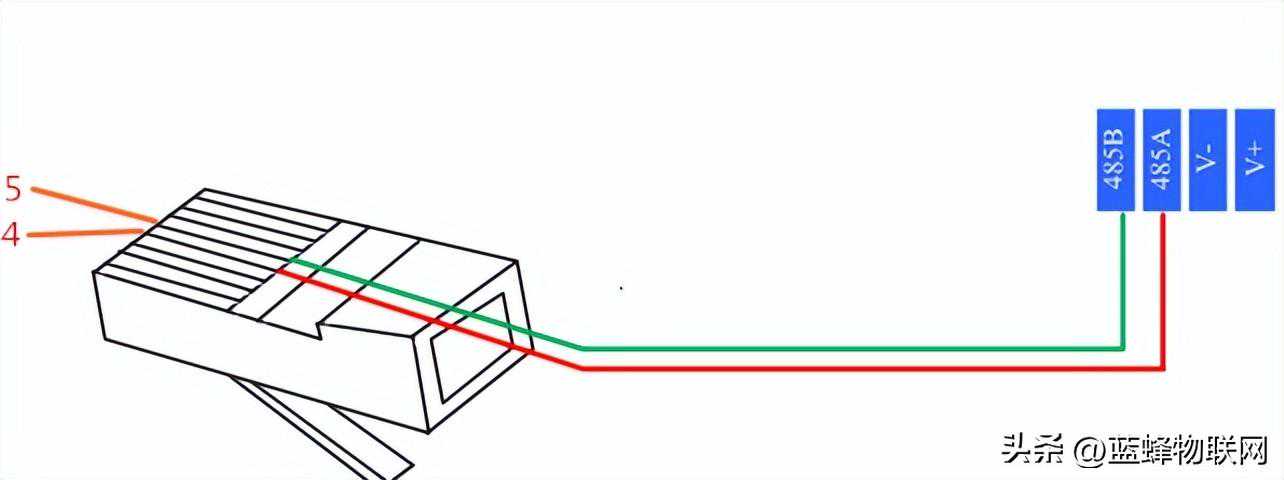 M340PLC连接电源,准备一颗水晶头,水晶头的第4个引脚和第5个引脚分别接EG20的485A和485B,如下图所示: