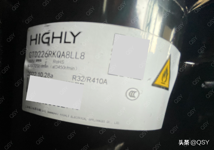 压缩机为海立GTD226RKQA8LL8双转子,排量为22.6cc