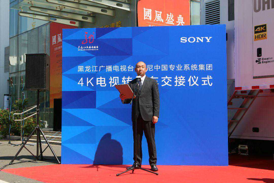 在交接仪式上,索尼中国专业系统集团本野桂总裁首先代表索尼公司向黑龙江广播电视台领导在这辆巨无霸转播车建造过程中给与索尼公司的信任表达了最诚挚的感谢。他表示,“黑龙江广播电视台超高清4K电视转播车是全国技术领先的4KIP转播车,实现了具备多种形态全媒体节目内容制作和分发能力的超大型、超高清转播系统。