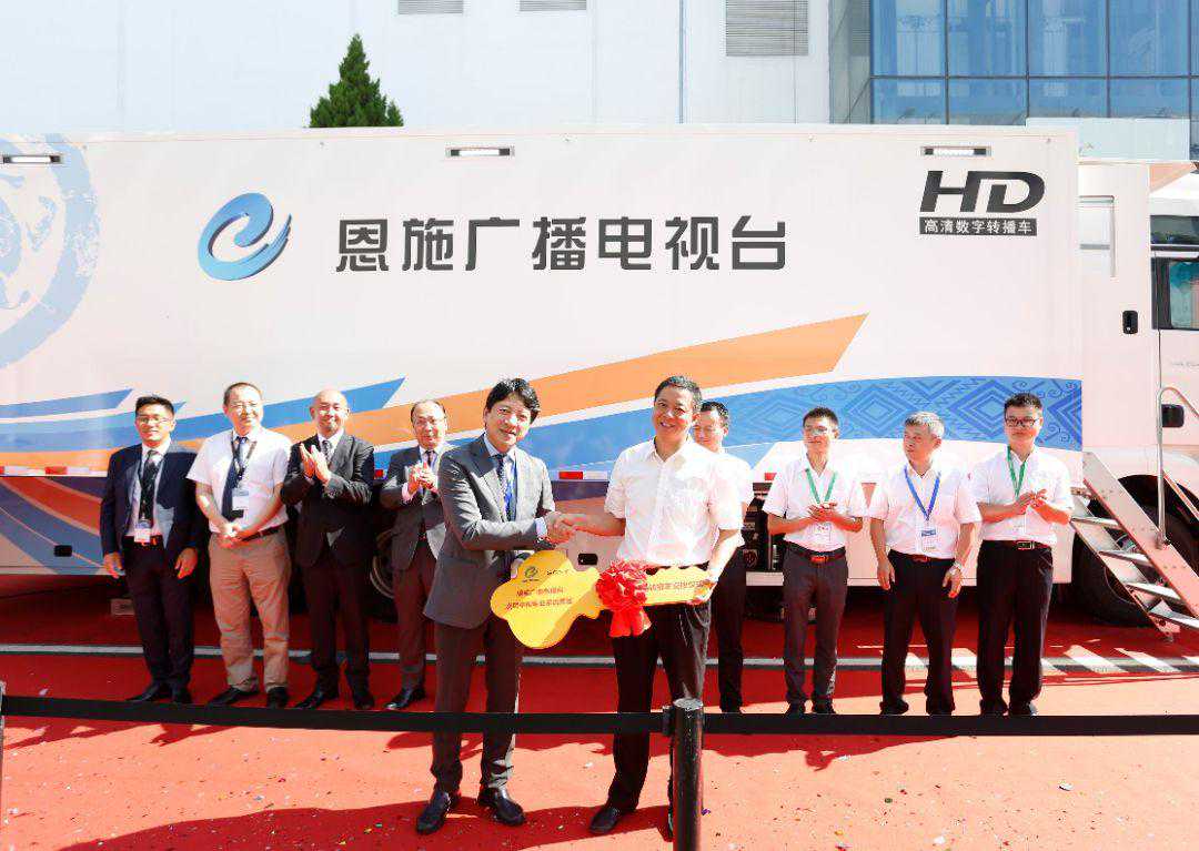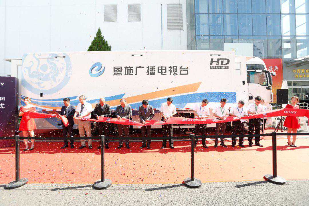 恩施广播电视台索尼中国专业系统集团转播车交接仪式隆重举办。恩施广播电视台台长贾继璠、融媒体新闻中心主任刘洋、节目包装中心主任李唯滔,索尼公司高级副总裁河野弘、索尼影像产品及解决方案公司副总裁桐山宏志、索尼中国专业系统集团总裁本野桂、销售总监吴永全、华西区销售高级经理何广智等领导出席并致辞。