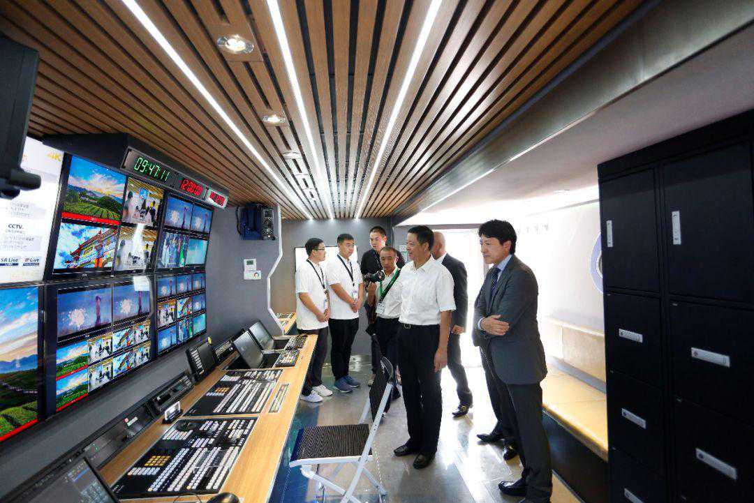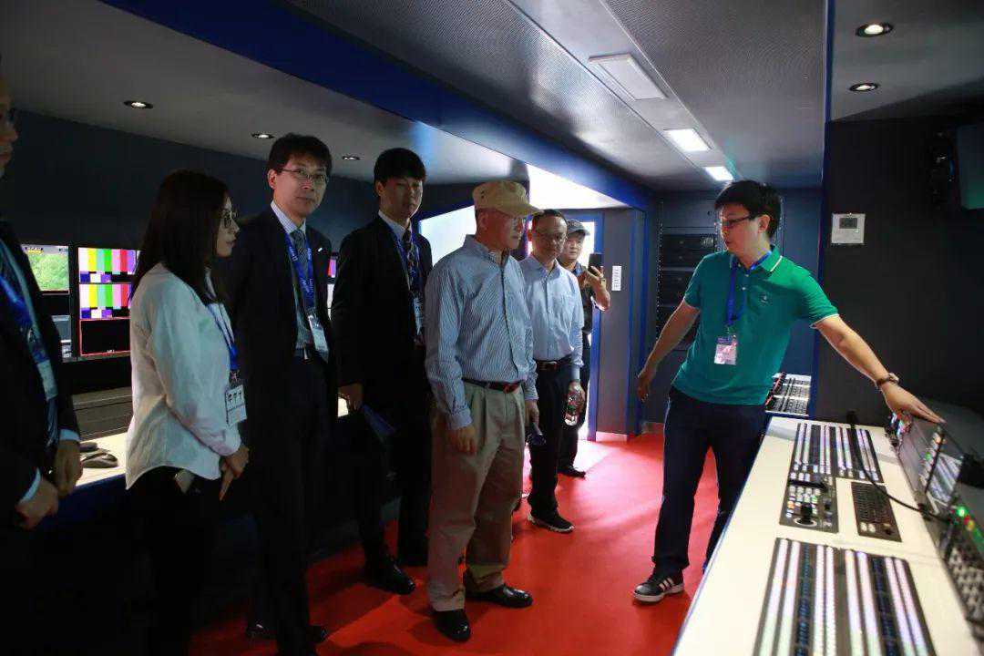 交接仪式结束后,全体领导及嘉宾登上转播车进行了参观,由松下技术人员为大家详细介绍了车上的专业设备。