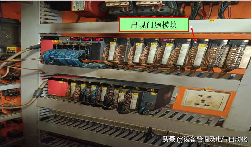 根据现场结合图纸上的插槽号和I/O分配地址查找出现问题的模块;当然也可以从PLC参数设置里查看是哪一个模块再到基板上找。
