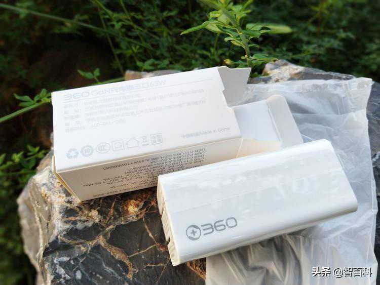 从刚开始的拆包装盒时我们就可以看出360这款GaN氮化镓快充充电器是个长方体,而且还是有那么一点扁的设计,从上面这个图,我们应该还是比较直观的看出来这样的设计的。