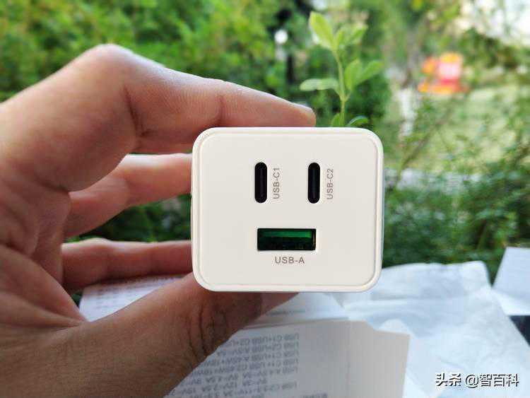 我们先来看一下插口面,USB-C1、USB-C2、USBA三插口,从这角度看,USB-C1/C2多像一双眼睛,USB-A多像嘴巴,加起来就像一个拟人化的表情,设计师也太个性了,这样的设计,充电时也能调节人的心情啊,比其它品牌那些呆板一排的工程化设计好看多了,360的设计师你这是想让我赞你么,哈~