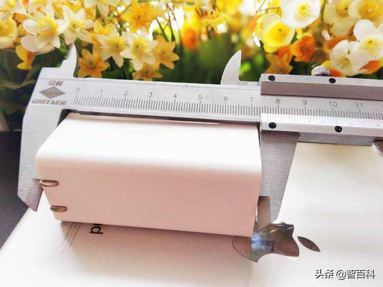 最后我们再用游标卡尺量一下其厚度,约为34mm。经过测量其尺寸,我们对360GaN氮化镓快充充电器的的体积就有一个大概印象了。