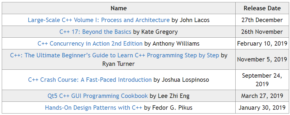 r/cpp:2019-02科纳ISOC++标准委员会会议报告()和科纳会议后的邮件列表()。