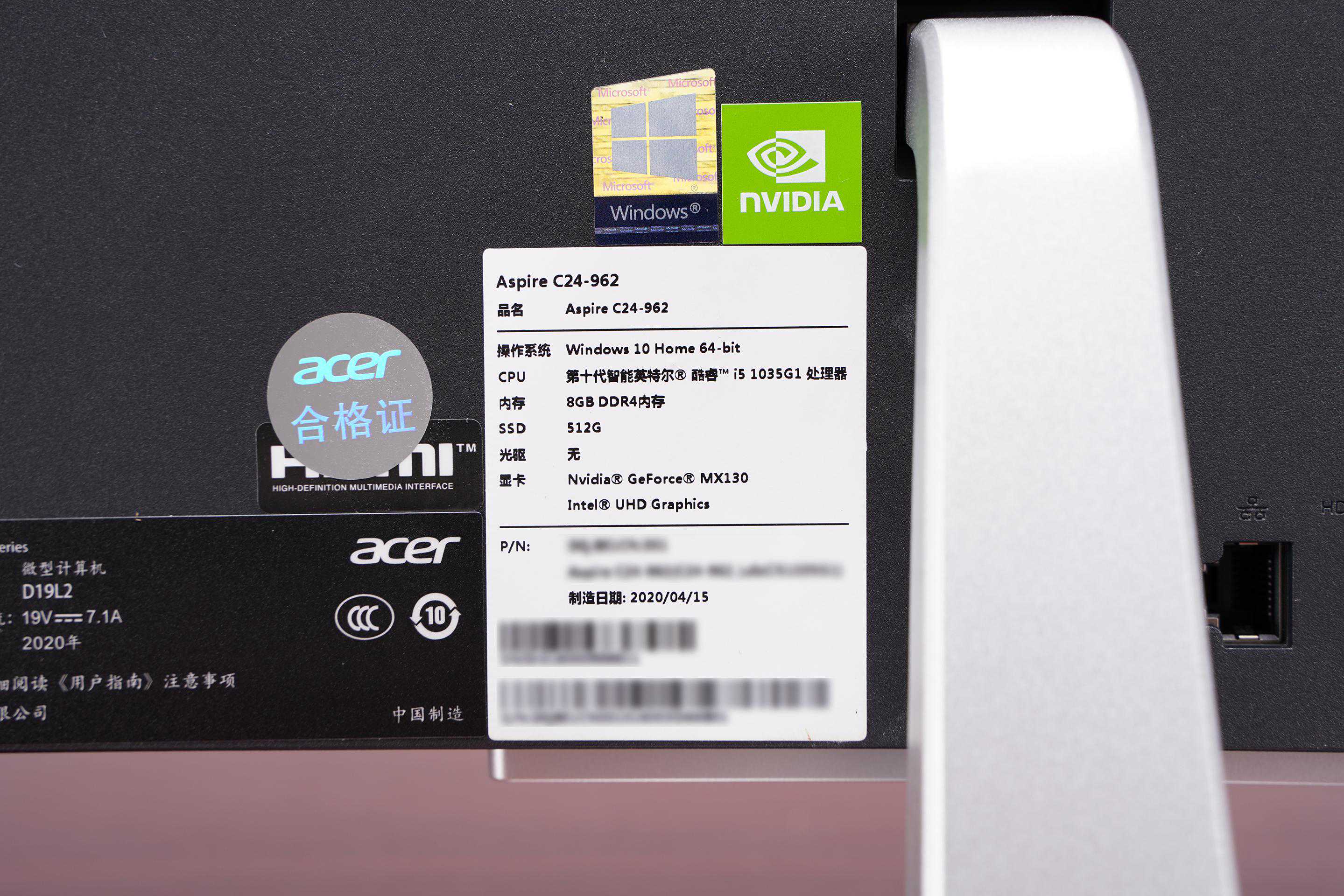 正版Windows和NVIDIALOGO贴纸,产品属性贴纸上标注了蜂鸟C24使用的Windows10家庭版64位系统,搭载十代酷睿i51035G1处理器、8GBDDR4显存、512GB固态硬盘、NVIDIAGeforceMX130独立显卡。