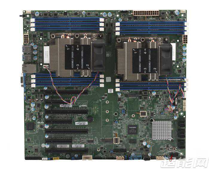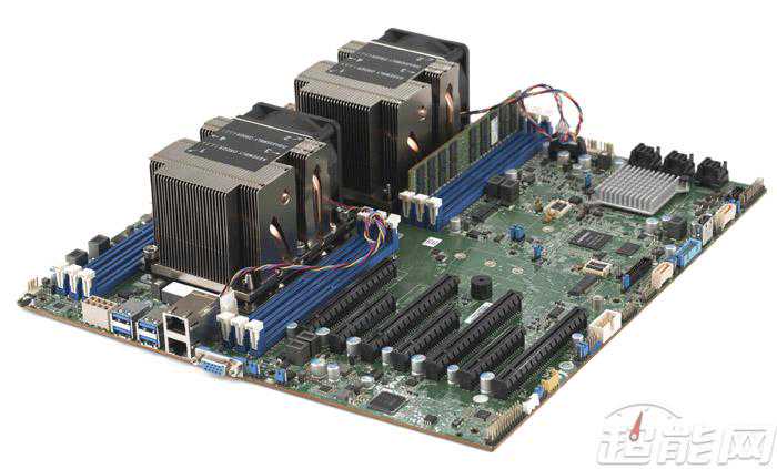 XeonPlatinum8170双路平台,主板上有12条DDR4内存插槽,每个CPU各6条,有和插槽各4条,都是全速的,存储接口方面有3个接口,两个SATA6Gbps接口,和接口各一个。