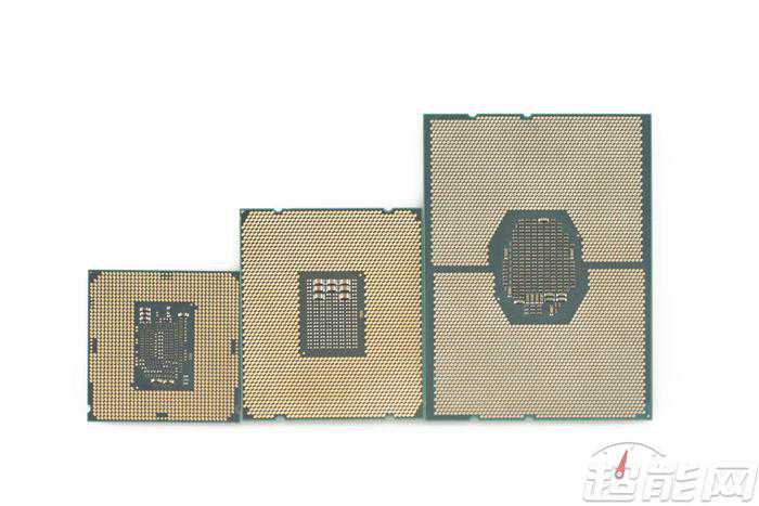 从左到右分别是XeonE3-1230v5、Corei7-6900K和XeonPlatinum8170,可见XeonPlatinum处理器比普通处理器大多了。