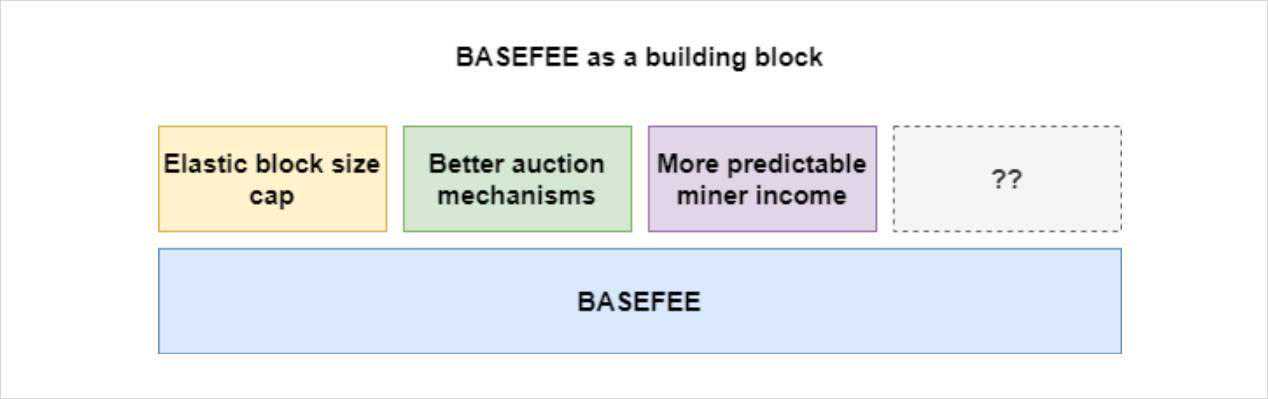 BASEFEE作为一个有趣的构建块,使得这些好处成为可能。它在协议中设置最低费用的能力,开辟了一个新的设计空间,从弹性区块大小、永久区块补贴、更好地抵抗经济抽象,到未来更好的竞拍模型。