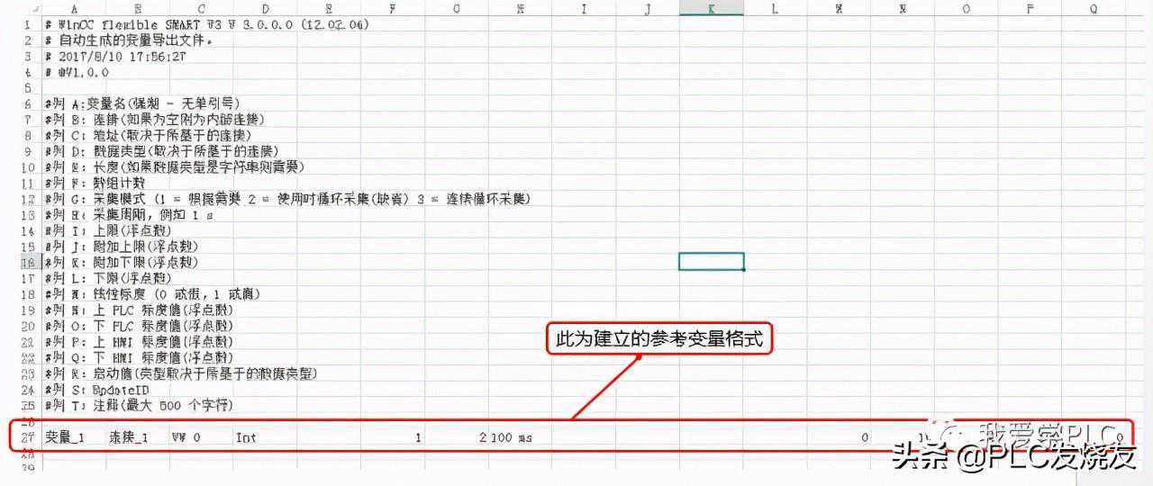 (2)打开导出的的文件及S7-200PLC中的符号表。把符号表中的名称和地址复制到中,按照建立的参考变量的格式进行修改。